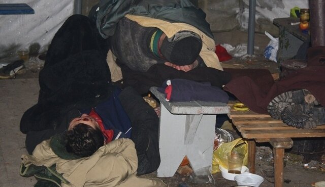 По наблюдениям врачей, в палатке обогрева находятся люди, в основном, нездоровые, у многих — проблемы с алкоголем.